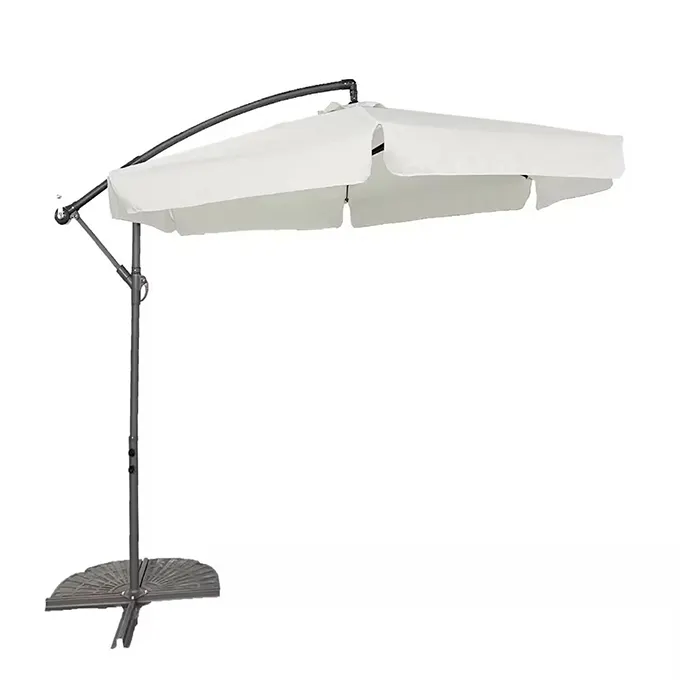Κρεμαστή ομπρέλα εξωτερικού χώρου με πτερύγιο μπανάνας προς πώληση για αίθρια και εξωτερικούς χώρους Αυτή η υψηλής ποιότητας ομπρέλα εξωτερικού χώρου έχει σχεδιαστεί για να παρέχει ανώτερη προστασία από τις δύσκολες καιρικές συνθήκες, ενώ προσθέτει μια κομψή πινελιά σε κάθε εξωτερικό χώρο. Διαθέτοντας στιβαρό σιδερένιο πλαίσιο και προηγμένο αδιάβροχο ύφασμα, αυτό το προϊόν εξασφαλίζει ανθεκτικότητα, σταθερότητα και μακροχρόνια απόδοση. Ιδανικό για αίθρια, καταστρώματα, βεράντες και άλλα υπαίθρια περιβάλλοντα, προσφέρει μια εξαιρετική λύση για όσους αναζητούν λειτουργικότητα και αισθητική. Βασικά χαρακτηριστικά: Η εξωτερική ομπρέλα με πτερύγιο μπανάνας διαθέτει ένα συμπαγές σιδερένιο πλαίσιο που είναι ανθεκτικό στη σκουριά και έχει κατασκευαστεί για να αντέχει τους δυνατούς ανέμους. Ο μοναδικός σχεδιασμός του περιλαμβάνει μηχανισμό χειροκίνητου στρόφαλου για γρήγορο και εύκολο άνοιγμα, επιτρέποντας στους χρήστες να προσαρμόσουν τη γωνία της ομπρέλας με ευκολία. Η σταυρωτή βάση ενισχύει τη σταθερότητα, καθιστώντας την κατάλληλη για χρήση σε διάφορες καιρικές συνθήκες. Το κάλυμμα είναι κατασκευασμένο από πολυεστερικό υλικό 180g με σύστημα εξαερισμού, εξασφαλίζοντας αποτελεσματική προστασία από τον ήλιο ενώ διατηρεί τη ροή του αέρα. Λεπτομερής περιγραφή: Φτιαγμένη με προσοχή στη λεπτομέρεια, αυτή η ομπρέλα βεράντας συνδυάζει την πρακτικότητα με τον μοντέρνο σχεδιασμό. Ο σιδερένιος σκελετός επεξεργάζεται με ένα βαθύ χρωματικό φινίρισμα επίστρωσης πούδρας, προσφέροντας οπτική γοητεία και πρόσθετη αντοχή στη διάβρωση. Οι έξι έως δώδεκα νευρώσεις είναι κατασκευασμένες από σίδηρο, παρέχοντας δομική αντοχή και στήριξη. Το κάλυμμα διαθέτει κατασκευή πολλαπλών πάνελ με ενισχυμένη ραφή, διασφαλίζοντας ότι παραμένει άθικτο ακόμη και σε έντονη χρήση. Η δυνατότητα ρυθμιζόμενης γωνίας επιτρέπει στους χρήστες να προσαρμόζουν τη θέση της ομπρέλας ανάλογα με τις ανάγκες τους, είτε αναζητούν σκιά κατά τη διάρκεια μιας ηλιόλουστης ημέρας είτε προστασία από την ελαφριά βροχή. Το πτερύγιο με λειτουργία κλίσης προσθέτει ευελιξία, επιτρέποντας στους χρήστες να ελέγχουν την ποσότητα του ηλιακού φωτός ή του αερίου που εισέρχεται στο χώρο. Αυτή η χειροκίνητη ανοιχτή ομπρέλα είναι εξοπλισμένη με έναν ανθεκτικό μηχανισμό μανιβέλας που λειτουργεί ομαλά και απαιτεί ελάχιστη προσπάθεια. Από πλευράς συσκευασίας, κάθε σετ συσκευάζεται προσεκτικά σε διαστάσεις 160*26*14 cm, με 1120 τεμάχια ανά δοχείο 40HQ. Το καθαρό βάρος είναι 10,5 κιλά, ενώ το μεικτό βάρος είναι 11,5 κιλά ανά σετ. Το προϊόν διατίθεται σε μια σειρά χρωμάτων, με επιλογές για προσαρμοσμένα λογότυπα χρησιμοποιώντας τεχνικές ψηφιακής εκτύπωσης, μεταξοτυπίας ή μεταφοράς θερμότητας. Θήκες χρήσης: Αυτή η ευέλικτη ομπρέλα είναι ιδανική για διάφορες ρυθμίσεις, όπως συγκεντρώσεις στην πίσω αυλή, αίθρια εστιατορίων, κήπους και εμπορικούς εξωτερικούς χώρους. Η στιβαρή κατασκευή του το καθιστά ιδανικό τόσο για οικιακή όσο και για εμπορική χρήση, διασφαλίζοντας ότι μπορεί να χειριστεί τη συχνή χρήση χωρίς συμβιβασμούς στην ποιότητα. Είτε διοργανώνετε ένα πάρτι είτε απλώς απολαμβάνετε ένα ήσυχο απόγευμα σε εξωτερικούς χώρους, αυτή η ομπρέλα παρέχει αξιόπιστη σκιά και προστασία. Σχόλια πελατών: Οι χρήστες επαίνεσαν την ανθεκτικότητα και την ευκολία χρήσης αυτού του προϊόντος. Πολλοί έχουν πα