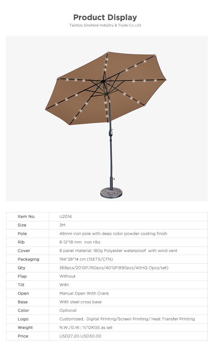 Όνομα Προϊόντος: 2.7 meters patio umbrella parasol aluminium with solar lights